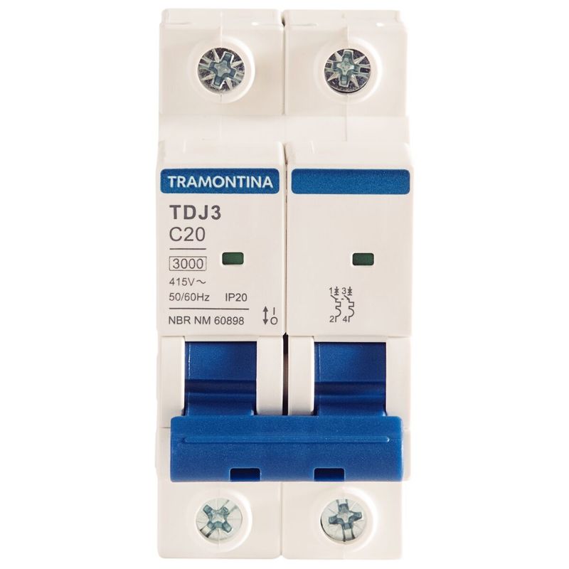Garanta o melhor para seus projetos elétricos- com o Minidisjuntor TDJ3 2 P 20 A 3kA curva C Tramontina- Desenvolvido para garantir a segurança da instalação- ele preserva a rede elétrica e seus equipamentos em caso de sobrecarga ou curto circuito- Ele possui janela de inspeção do estado- é instalado no quadro de Distribuiçãouição e dimensionado de acordo com a potência dos equipamentos- números de tomadas e quantidade de lâmpadas-..
