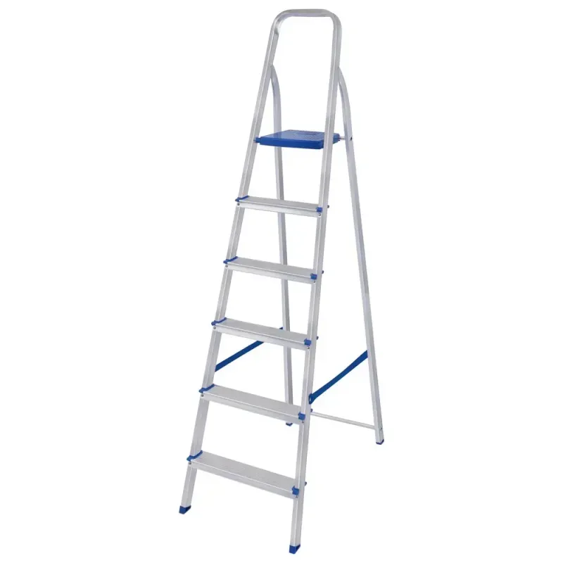 Para realizar consertos e manutenção doméstica com segurança é preciso ter uma escada que mantenha você firme no momento da utilização. Por isso a Mor elaborou a Escada de Alumínio 6 Degraus, ideal para pequenos reparos e para alcançar lugares mais elevados em sua casa, além de ser dobrável e fácil de guardar. Possui estrutura em tubo retangular e chapas em alumínio, material super leve, durável (mesmo em áreas litorâneas!) e peças plásticas em polipropileno de alta resistência. .
