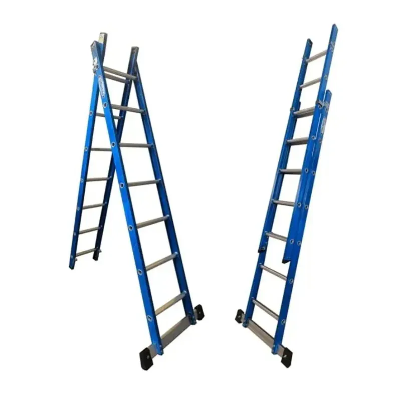 A Escada tesoura dupla possui o formato, compostas por duas partes que podem ser utilizadas de ambos os lados. Fabricada em Perfil através do processo de pultrusão e degraus planos em alumínio com frisos antiderrapantes, proporcionando maior conforto em sua utilização..