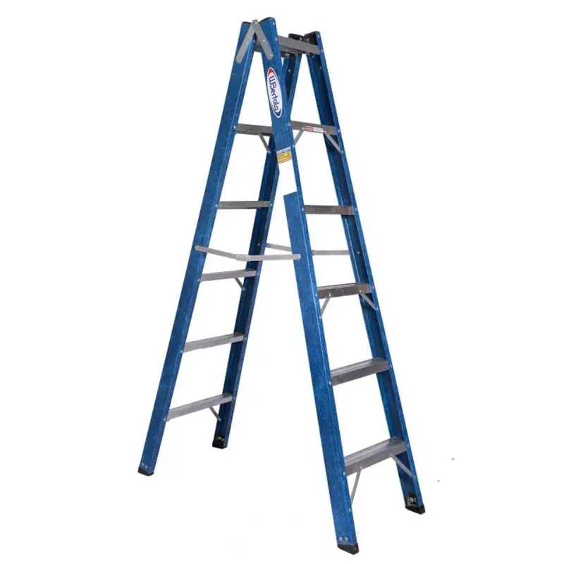Escadas Tesouras Duplas são estruturas em formato "A", compostas por duas partes que oferecem versatilidade de uso em ambos os lados. Garantem durabilidade e leveza, além de serem seguras por não conduzirem eletricidade. Apresentam degraus antiderrapantes de alumínio, proporcionando conforto ao usuário..