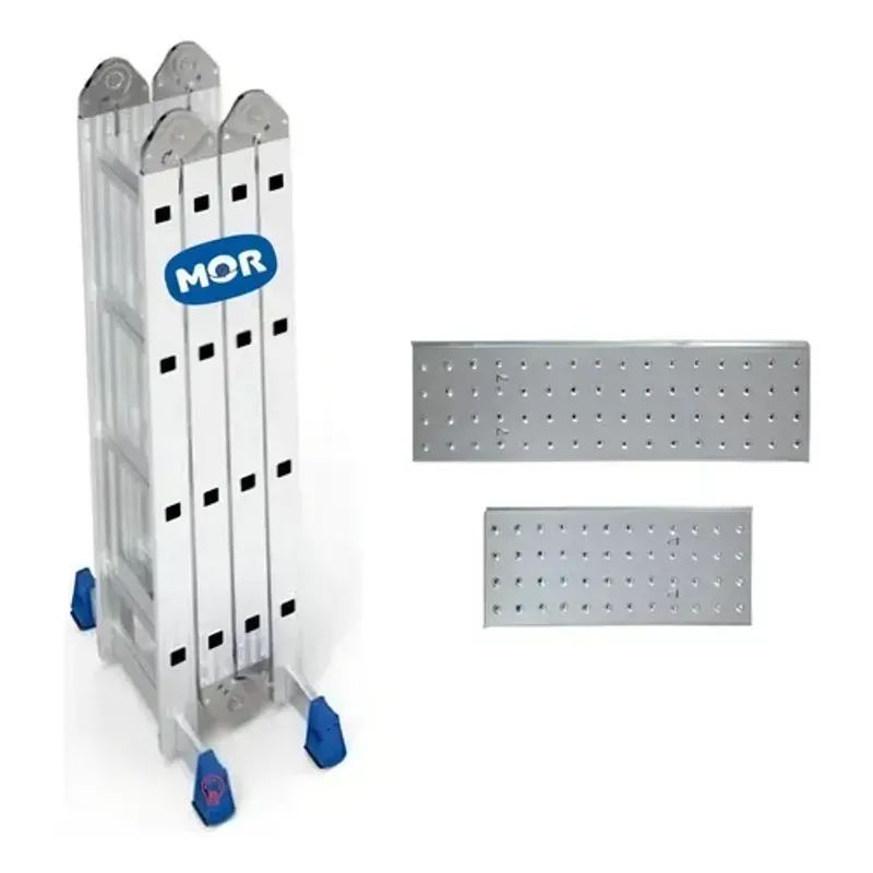 A Escada Multifuncional com Plataforma é prática e muito eficiente. Com ponteiras emborrachadas nos pés, degrau com ranhuras e sistema de trava de segurança ela pode ser montada em posições diferentes, facilitando na hora do uso. Seu grande diferencial são suas chapas de aço que se encaixam servindo como plataforma, possibilitando utilizar a escada como andaime. Possui pés e degraus em alumínio, dobradiças em aço galvanizado com exclusiva trava de segurança, oferecendo estabilidade e segurança total durante seu uso. Com 4 partes de 4 degraus..