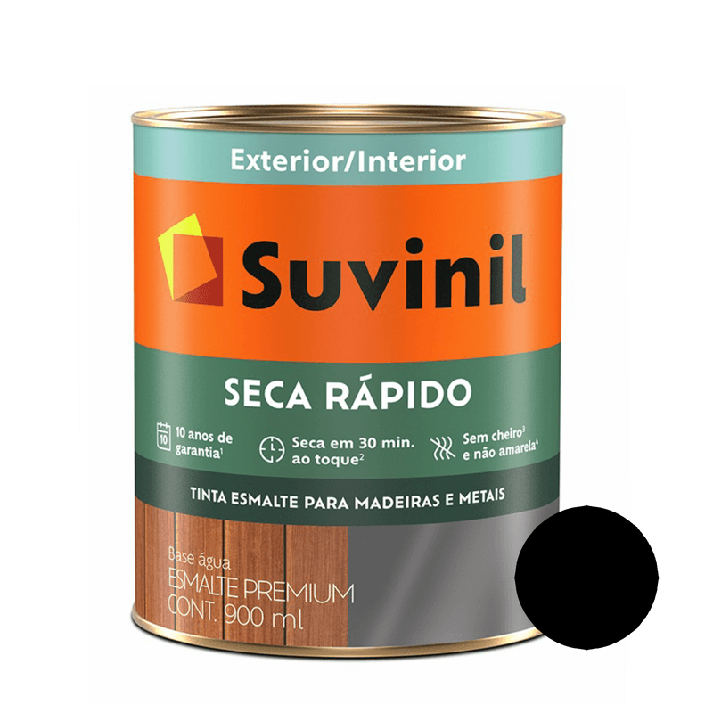 Esmalte Brilhante Preto Base Agua Seca Rápido Suvinil