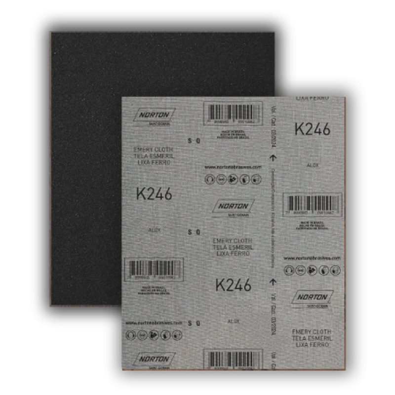 A Folha de Lixa Ferro K246 é uma lixa de pano com grãos de Óxido de Alumínio Marrom indicada para o lixamento de metais e em operações de maior remoção de material, nas quais são necessárias uma lixa com maior resistência. É recomendada para limpeza e remoção completa de oxidações, tintas e vernizes, acabamento em massa plástica e nivelamento de superfícies..