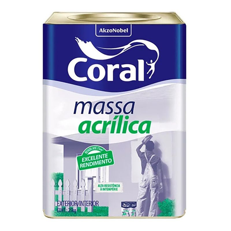 A Massa Acrílica Coral é indicada para uniformizar, nivelar e corrigir imperfeições em paredes externas e internas.Com alto poder de preenchimento, ótima aderência, é fácil de lixar e aplicar, além de possuir secagem rápida, elevada consistência, resistência à intempérie..