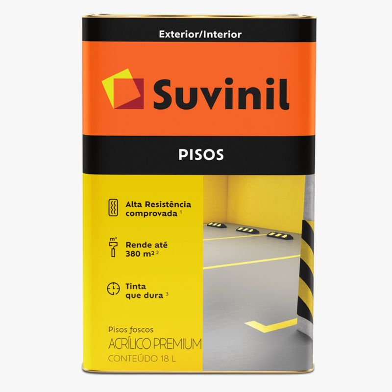 Suvinil Pisos é a tinta que pinta diversos tipos de pisos. Garagens, calçadas, quadras, áreas de lazer, escadas, pisos de concreto, pisos de cimento e pisos cerâmicos foscos. Para garantir máxima eficiência, utilize com Suvinil Fundo Preparador..