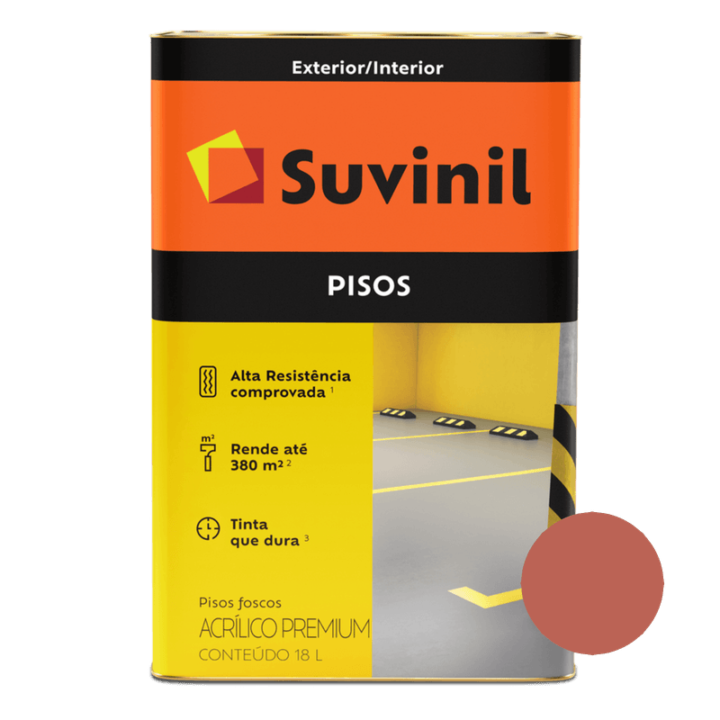 Suvinil Pisos é a tinta que pinta diversos tipos de pisos. Garagens, calçadas, quadras, áreas de lazer, escadas, pisos de concreto, pisos de cimento e pisos cerâmicos foscos. Para garantir máxima eficiência, utilize com Suvinil Fundo Preparador..