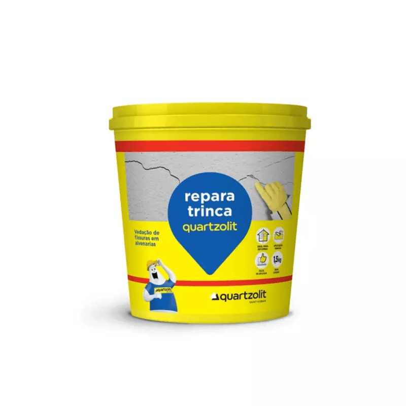 Repara trinca Quartzolit é uma massa acrílica elástica para a correção de fissuras e trincas. É de fácil aplicação e já vem pronto para uso, além de possuir excelente aderência. É indicada para correções de fissuras passivas que sejam de grandes dimensões em alvenarias revestidas com argamassas convencionais de cimento ou de cimento e cal...