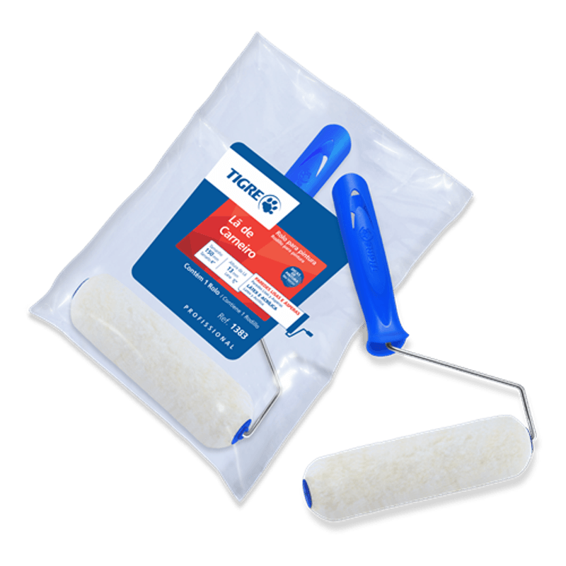 Rolo Lã de Carneiro altura 13mm, indicado para tinta latex e acrilica sobre parede lisa e áspera...