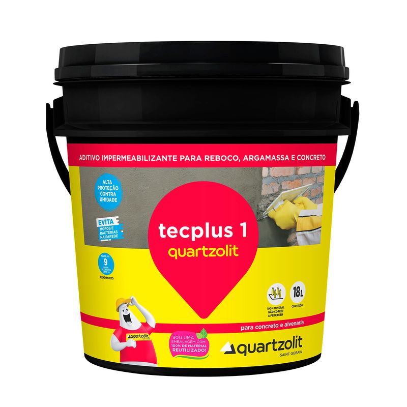 Tecplus 1 Quartzolit é um aditivo líquido impermeabilizante para concreto e argamassa, quando é adicionado à água de amassamento proporciona a redução da permeabilidade para evitar a umidade e infiltração d’água na argamassa. Aumenta a coesão das argamassas, para melhor trabalhabilidade. Pode ser aplicado concretos e argamassas em elementos que estejam expostos à umidade e à pressão da água. • Fácil adição a argamassas e concretos. • Maior garantia e durabilidade da obra. • Amplo uso na construção civil. • Isento de cloretos que agridem a armadura da estrutura. CONTRA INDICADO PARA: • Gesso ou argamassa de gesso. • Misturas onde o aglutinante não seja cimento Portland...