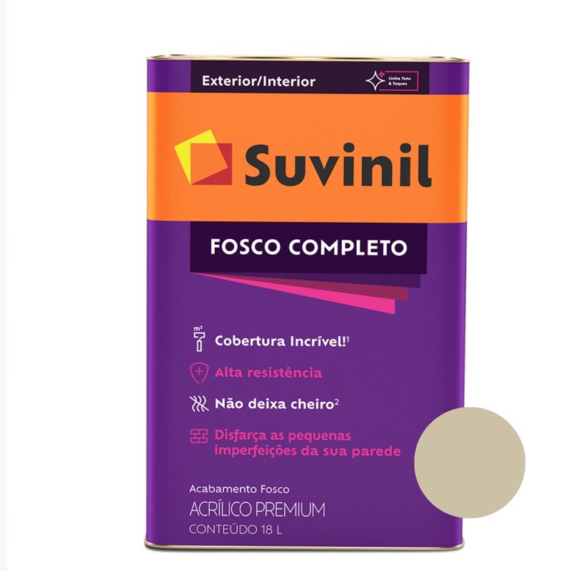Tinta Suvinil Acrílico Fosco Completo Premium é a tinta completa da Suvinil. Seu alto poder de cobertura permite que você renove a casa de um jeito rápido e prático com menos demãos. E mais, sem sujeira após a aplicação gaças a tecnologia antirrespingo. Ela também é lavável, sem cheiro em até 4 horas após a aplicação, com longa durabilidade e seu acabamento fosco não revela imperfeições..