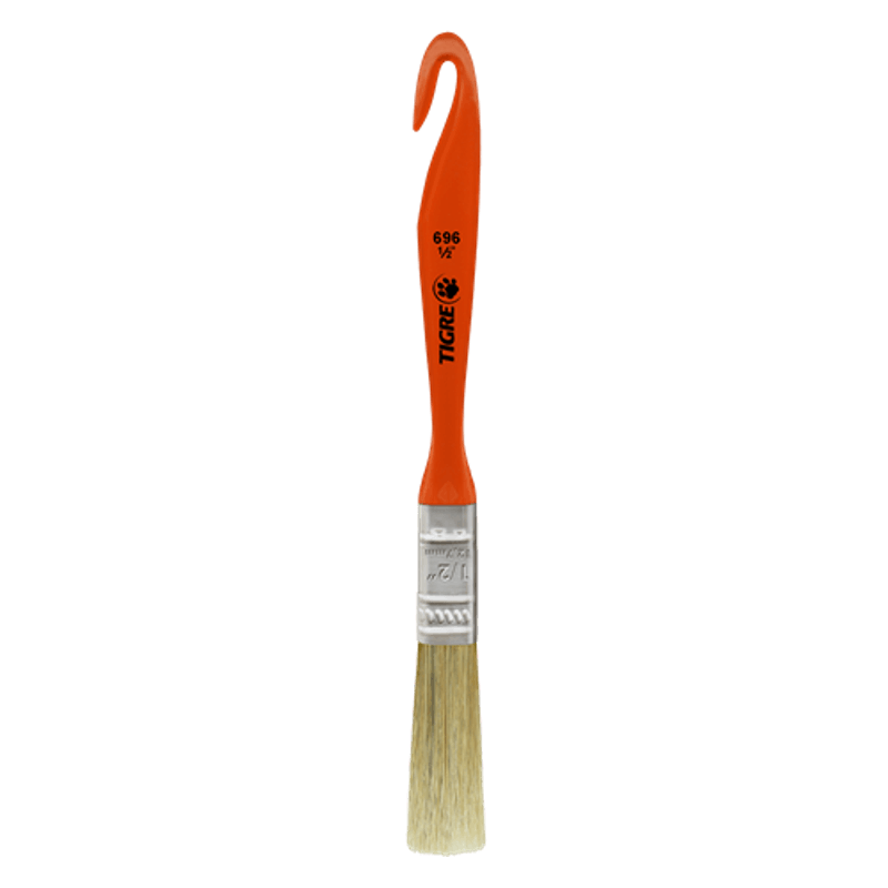 Trincha cabo Anzol com cerdas suaves brancas. Ótimo acabamento. Boa capacidade de retenção de tinta. Ideal para pinturas com verniz e stains..